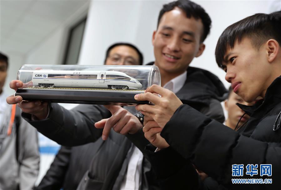 在国产乱码久久久久久红粉影视轨道交通学院实验室,老挝留学生仔细查看高铁列车“和谐号”的模型(3月26日摄)。